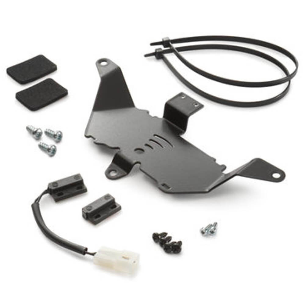 This KTM Alarm System Mounting Kit 64112938044 is required for installing KTM Alarm System 60112035000 to your motorcycle. It contains all the necessary parts for fixing it securely to your vehicle.