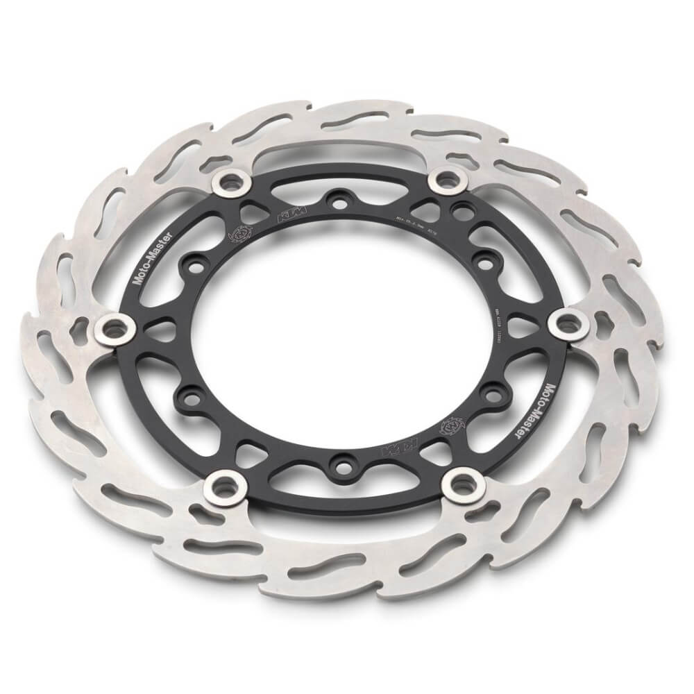 The KTM Flame Brake Disc 78909960000 boasts a floating design, wherein the inner ring is anodised, and the outer ring constructed from high-performance stainless brake steel. This construction maximizes pad life, while the Flame design further enhances braking performance.