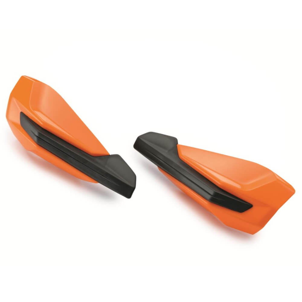 This KTM Handguard Kit 79602182044EB features a lightweight construction and a distinct racing-inspired look. Its black centre section boasts maximum strength for superior protection, and its orange coloured upper and lower parts are highly flexible for withstanding extreme conditions.