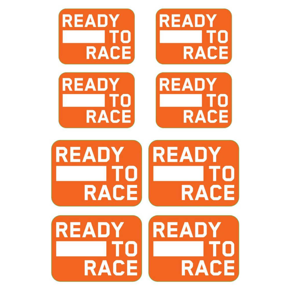The Hub Sticker Set 79109998100 from KTM includes the renowned "Ready To Race" motto in the signature orange hue. Available in two dimensions.