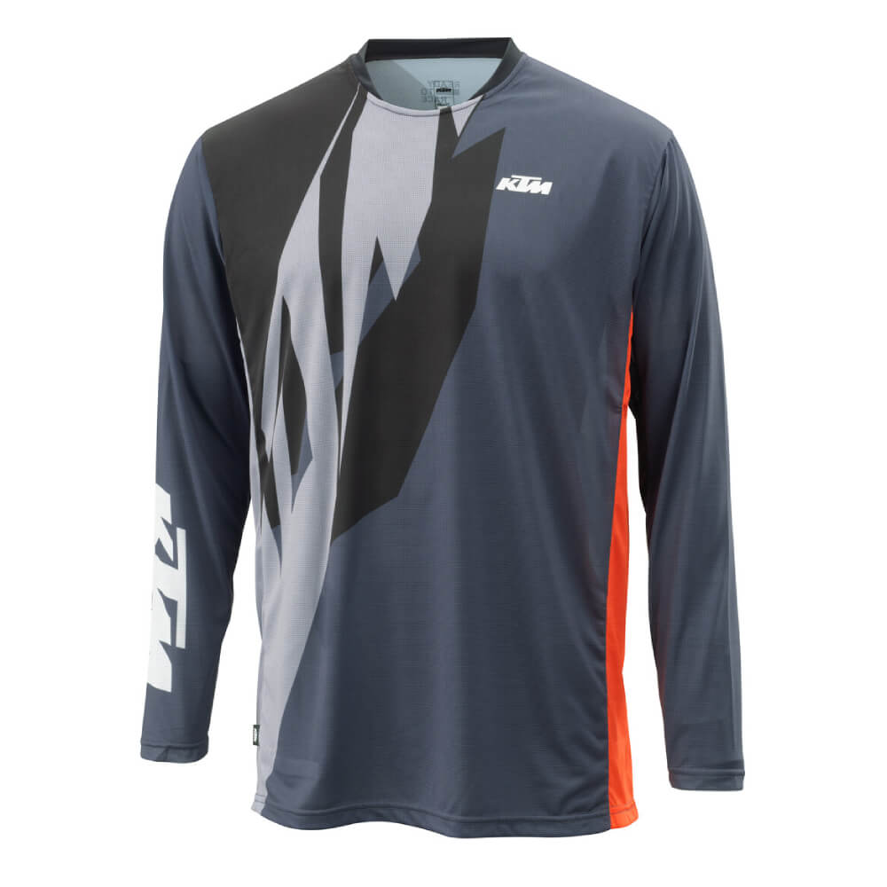 Featuring UV-resistant and fade-proof sublimation prints, the KTM Pounce Jersey Black not only delivers on performance but also on lasting aesthetics. The dynamic blend of colours - grey, black, and orange - adds a bold and distinctive touch to your off-road gear, making you stand out on the trails.